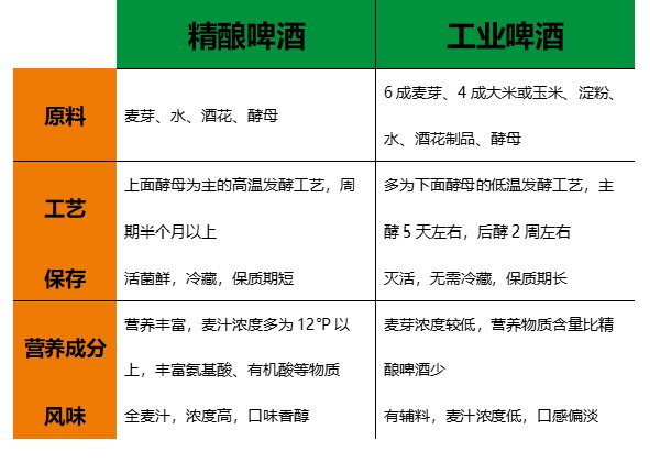 表格 1 精釀啤酒與工業(yè)啤酒的區(qū)別