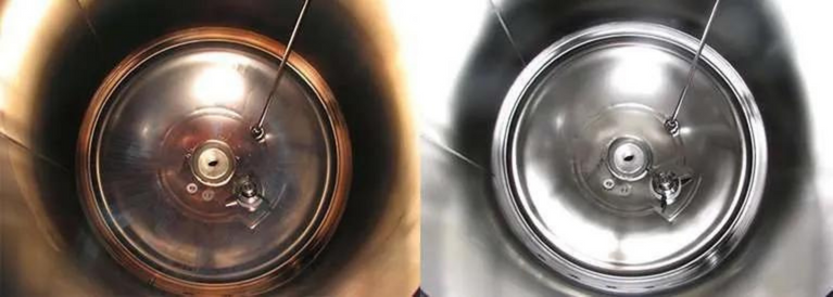 糖代謝的中間產(chǎn)物——草酸,與酒液中的鈣離子結(jié)合,生成草酸鈣而析出,以晶體狀附著于酵母表面和發(fā)酵容器上,形成了所謂的“啤酒石”。啤酒石或酸性清潔液等酸性物質(zhì)也會(huì)破壞不銹鋼的保護(hù)層,使其容易生銹和腐蝕。